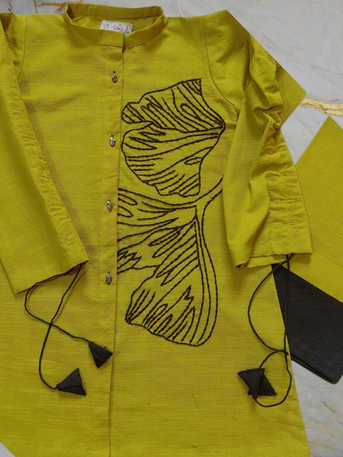 This girls' two-piece co-ord set in mustard is crafted from soft khaddar fabric for comfort and warmth. The hand embroidery adds a delicate, personalized charm, making it perfect for special occasions or everyday wear. Designed to keep your little one cozy while looking stylish, this set is a thoughtful and beautiful addition to her wardrobe.